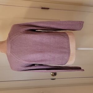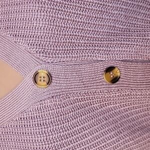 Cute Cloudchaser cropped Dark Lavender/Heather purple, button down (4 buttons) sweater, NWOT, Size Jr M. Very cute with jeans! Photos are on a Size 6 mannequin.