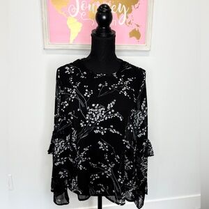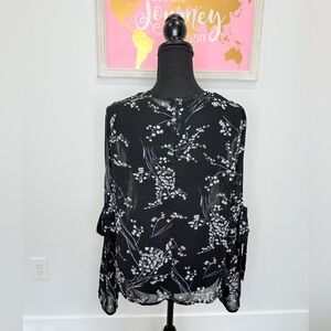 Cloud Chaser Sheer Black Floral Blouse with Tie Sleeves (L)