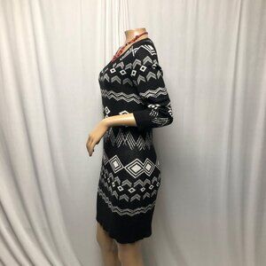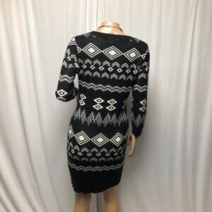 Cloud Chaser Sweater Dress Womens Size Large Black White Geometric Long Sleeve