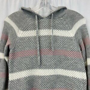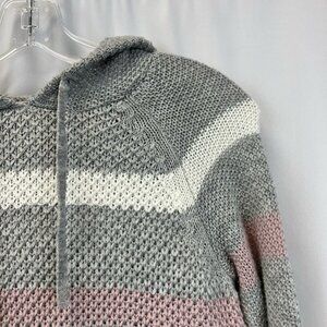 Cloud Chaser Womens Pullover Sweater Multicolor Striped Long Sleeve Hooded XS