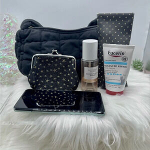 *Disclaimer: look closely at the photos and the close up of the material of the hand bag, the soft material easily attracts fuzzies and lint due to the black color.