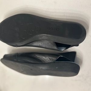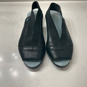 1" Heel. Slip-on style with elastic for the best fit. Breathable, anti-smell, antimicrobial footbed. Super soft Italian leather upper. Light and flexible rubber outsoles.Made in Portugal. Pre-loved, still a classy and comfy flat/sandal.