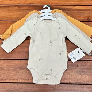 Cloud Island Cream, Tan, and Yellow Baby Bodysuit Trio Size 0-3 Months, NWT
