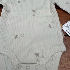 🕊️ Adorable and cozy! This 3-Pack of Long Sleeve Wide Ribbed Bodysuits from Cloud Island™ is perfect for your little one or as a thoughtful baby shower gift. Includes a stylish mix of solid colors and a sweet bird print, all in a trendy wide ribbed texture.