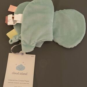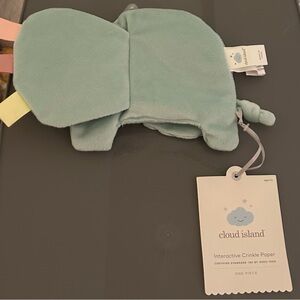 Adorable mint elephant toy with striped belly. Includes crinkle paper and colorful tags.