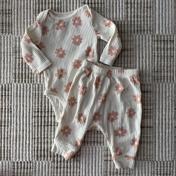 Cloud Island Floral Ribbed Baby Outfit