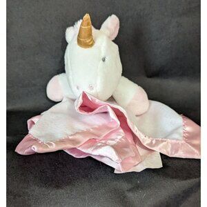 Cloud Island Pink White Unicorn Baby Sparkle Satin Trim Security Lovey plush