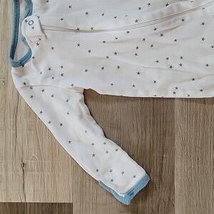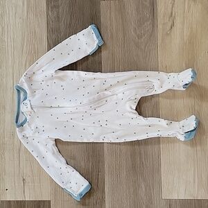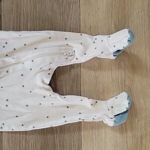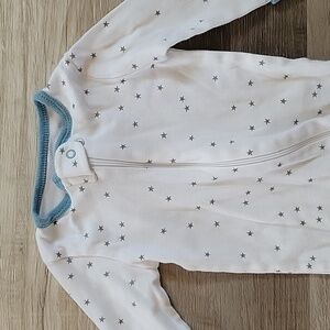 Cloud Island Star Sleeper. Size 0-3 Months. White with blue accents and stars all over. Zip closure. Lightweight cotton material. Foldover mittens. Great pre-owned condition. Ships from a smoke and pet free home. Most of my baby items are listed individually. Filter by category and like or bundle for an offer and shipping discount.