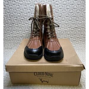 Cloud Nine Chestnut Brown Sheepskin Tundra Boots Womens 8 NIB NEW Box Lace UP