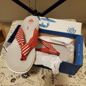 Never Worn....These sandals have extra cushion for a very comfortable feel while walking. Every step you take you will be thanking your stars that you found these sandals. The Box reads...Love Every Step. enough said. They ran a bit small so if you wear a 8 this shoe fits perfectly.