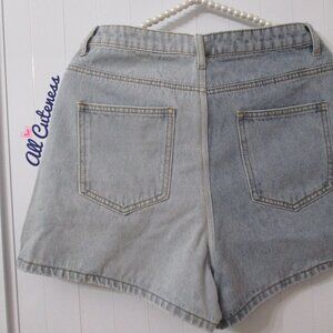 Cute Cloud Ten high rise waist color block denim shorts. These shorts are unique. Each piece is totally one-of-a-kind and will vary due to the dying process. Zip fly with button closure. 5 pocket style.