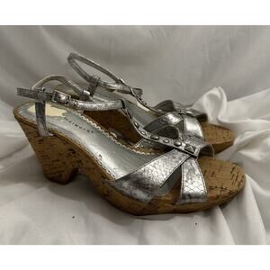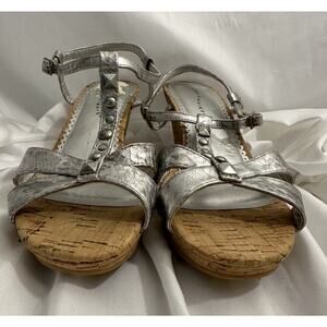 Cloud Walkers Willow Silver Sandal Open Toe Wedge Ankle Strap Studs Cork Heel 9W