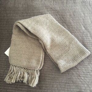 Cloud spun by Hansen Tan Knit Fringed Scarf. A classic style fringed scarf. In a great neutral. Fringed ends. Super soft. Made in the USA. NWT. Pet and smoke free home.