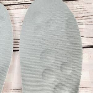 These CloudSole Insoles have never been worn, just tried on. They have shock absorbing and powerful plush design. Acupressure points, cushioned arch support, 180 degree heel support. Sweat and odor free technology.
