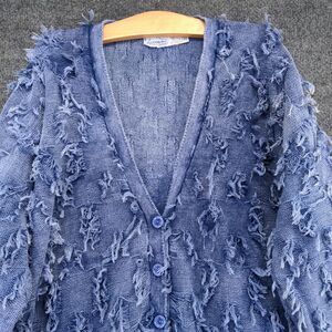 Condition: 100% Cotton button-up shaggy cardigan sweater. A few blemishes throughout as pictured.