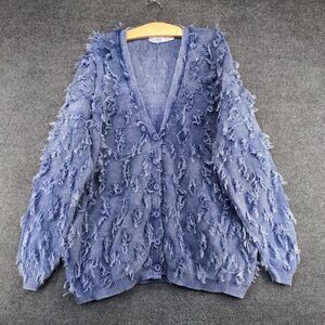 Cloudburst by Helene Women's Shaggy Cardigan Sweater Blue One Size Vintage