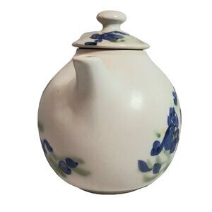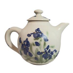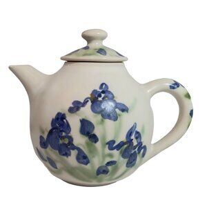 Clouds Folsom Pottery Teapot Lidded Large Floral Iris Studio Art Vintage 1994