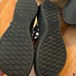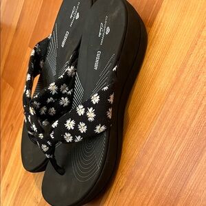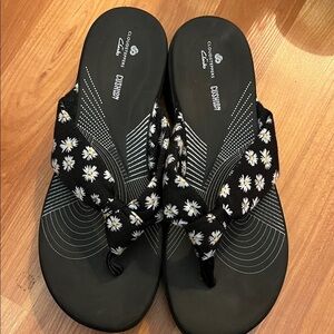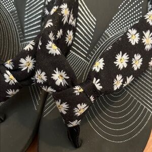Comfortable and stylish sandals with daisy print. Perfect for casual wear.