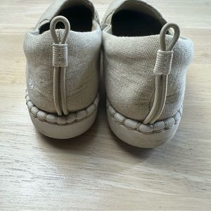 Style: Office Work Casual Comfy Comfortable Walking shoes Flats Slip on style Shimmer Metallic speckles Glitter Neutral Simple Goes with everything Easy to style Vacation Travel Cruise Boat shoes Beachy Summer Spring