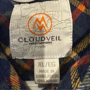Cloudveil Flannel Shirt Mens XL Button Up Blue Plaid Cotton Long Sleeve