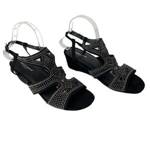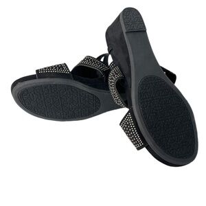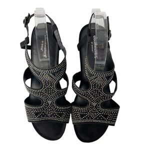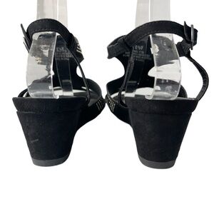 Cloudwalkers Lynn Black Faux Suede Studded Wedge Heel Sandals Size 8.5 W