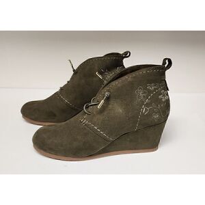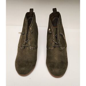 Cloudwalkers Olive Green Ankle Boots Sz 9M Lace Up Wedge Floral Embroidery