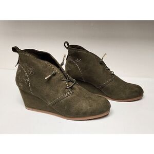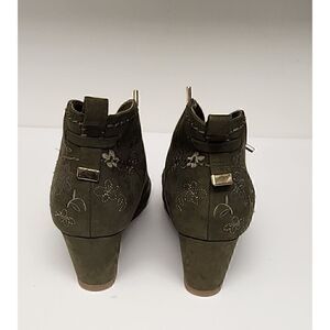 Cloudwalkers Olive Green Ankle Boots Sz 9M Lace Up Wedge Floral Embroidery