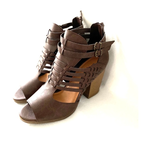 Cloudwalkers Kiera Size 7W Brown Zippered Back Open Toe Heel Caged Sandals. New with Box. Never worn.