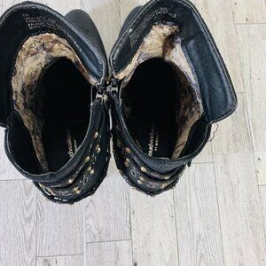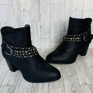 Cloudwalkers Westside Ankle Boots 7W Biker Western Strappy Stud Rhinestone Zip
