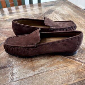 Gently pre-owned Women's Cloudwalkers Signature II Brown Suede Loafers in size 8WW.