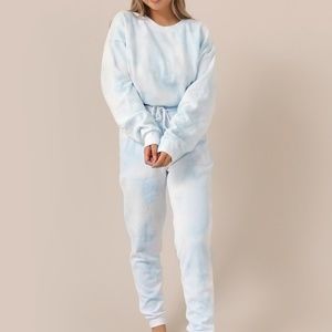 WILDRINA.COM The comfiest tie dye set is here! Our Cloudy Blue Tie Dye Set are the perfect combination between cozy and fun for your loungewear look. They are finished with an elastic waist, drawstring, and pockets. *Please note, each set will vary slightly in color and design, as each piece is uniquely made. *We recommend sizing up for a looser and cozier fit.