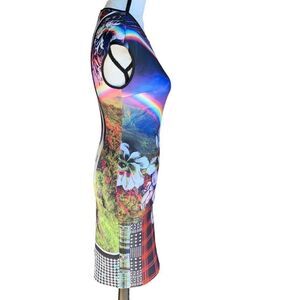 Clover Canyon Ashford Castle Neoprene Rainbow Ireland Bodycon Dress XS $295 NWT