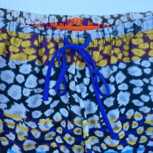 Clover Canyon Blue Yellow Abstract Print Silk Shorts | Size S