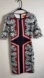 Embrace a sleek silhouette with this Clover Canyon bodycon dress, artfully designed with black and white floral stripes accented by bold red lines. Its knee-length cut and three-quarter sleeves offer a classic, sophisticated look, while the crew neck adds a touch of simplicity. The dress's comfortable stretch fabric ensures a flattering fit for any occasion. Dry clean only. EUC.