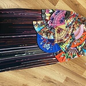 Clover Canyon / Dancing Fans Dress abstract midi sheath dress in Neoprene M