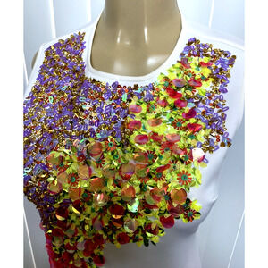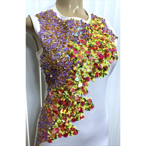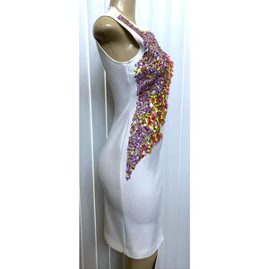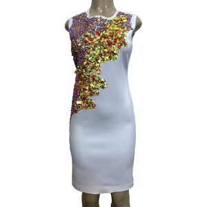 Clover Canyon Dress Sleeveless Sheath Multi Color Sequin White Scuba Crew Neck M