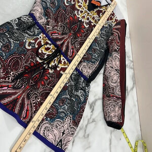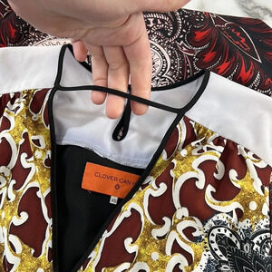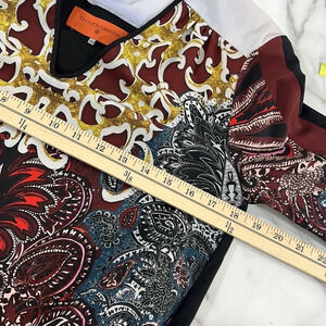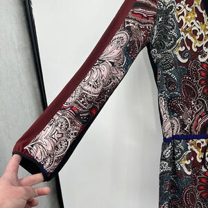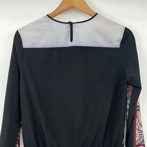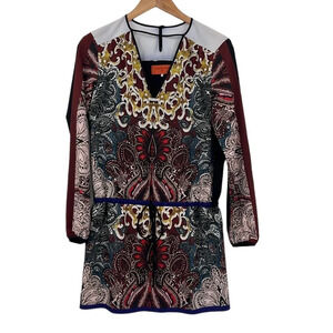 Clover Canyon Dress Womens XS Red Blue Printed Bubble Sleeve Mini V Neck.Chic printed dress with drop waist and long sleeve. Button closure on back. 96% Polyester, 4% Spandex. Pre-owned condition. Light marks on the back. Please see photos.