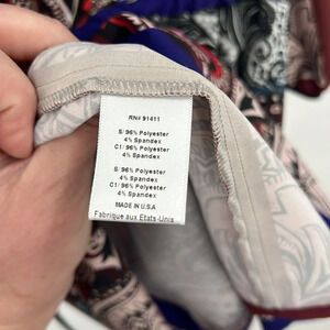 Clover Canyon Dress Womens XS Red Blue Printed Bubble Sleeve Mini V Neck