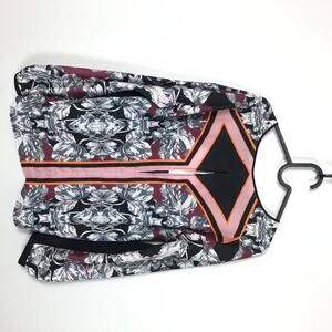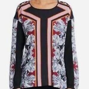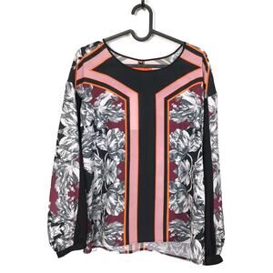 Clover Canyon Floral color block print light weight semi sheer blouse with vented keyhole back