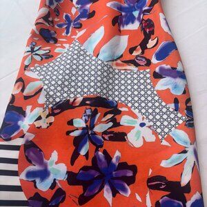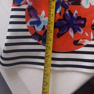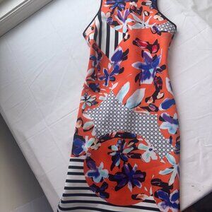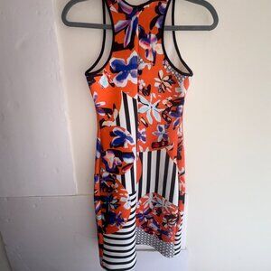 Clover Canyon Floral Discs XS Orange/Black Neoprene Scuba Sheath Dress Bodycon