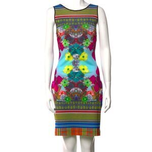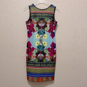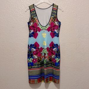 Neoprene Sleeveless Dress With Mixed Media Floral Diamond Print