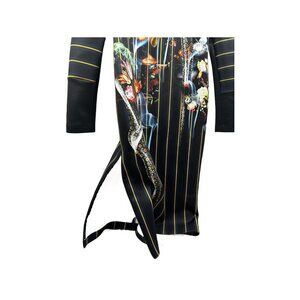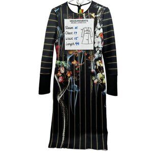 Clover Canyon Modern Elegant Floral & Stripe Scuba Midi Dress Firm Stretch Sz M