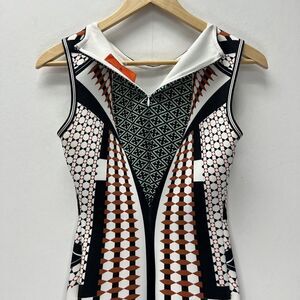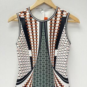 Clover Canyon Neoprene Sheath Dress Earth Tones Bold Print Graphic Sleeveless XS