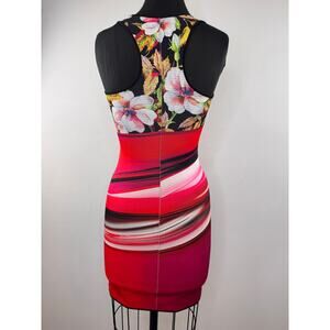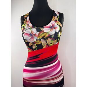 Clover Canyon Multi Reversible Sheath Dress Floral Scoop Neck Racerback Scuba