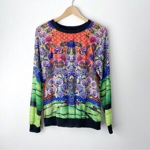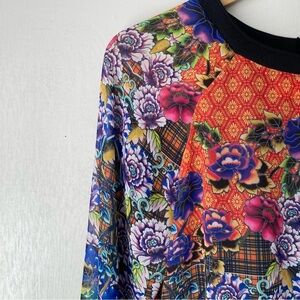 Clover Canyon Sheer Artsy Abstract Floral Blossom Print Sweatshirt Medium
