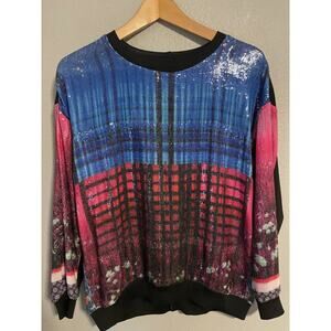 Clover Canyon Womens Small Sequin Plaid Floral Sweatshirt Blue Pink Lightweight