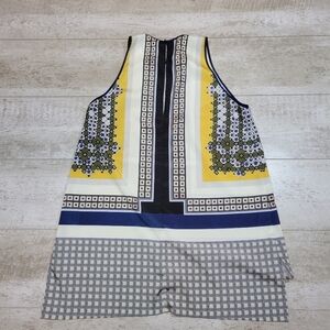 Sleeves lightweight printed blouse. Excellent condition. Blue white black white. Made in USA