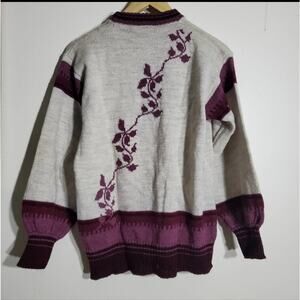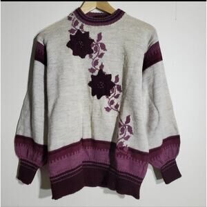 Clover Casuals British Wool balloon sleeve floral sweater M medium