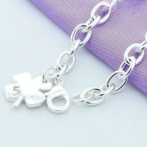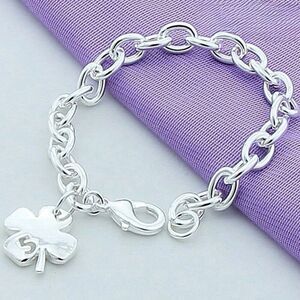 This elegant bracelet features a clover shaped pendant, symbolizing luck and charm. Crafted with a sterling silver plating, it offers a timeless and polished look. The adjustable chain ensures a comfortable fit for any wrist size, making it a versatile accessory for women. Perfect for gifting or adding a touch of sophistication to your jewelry collection, this bracelet is brand new and ready to bring a little extra luck to your day.