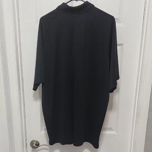 Classic black polo with Clover logo branding. Shiny stretchy breathable comfy material is versatile for wear from the office to the golf course in any casual setting.